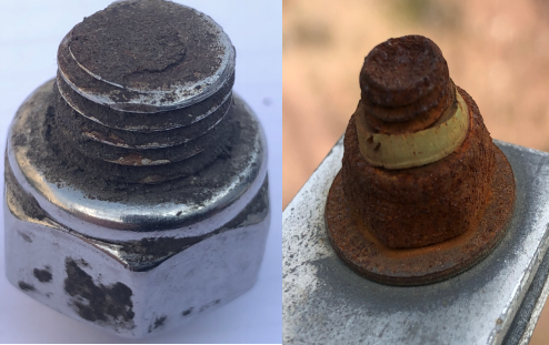 尼龍防松螺母在擰緊過程會對涂層電鍍表面會產生破壞而導致銹蝕,銹蝕會隨感染不斷放大生銹面積,尼龍膠也會隨銹蝕而被氧化!戶外使用特別容易引起生銹!