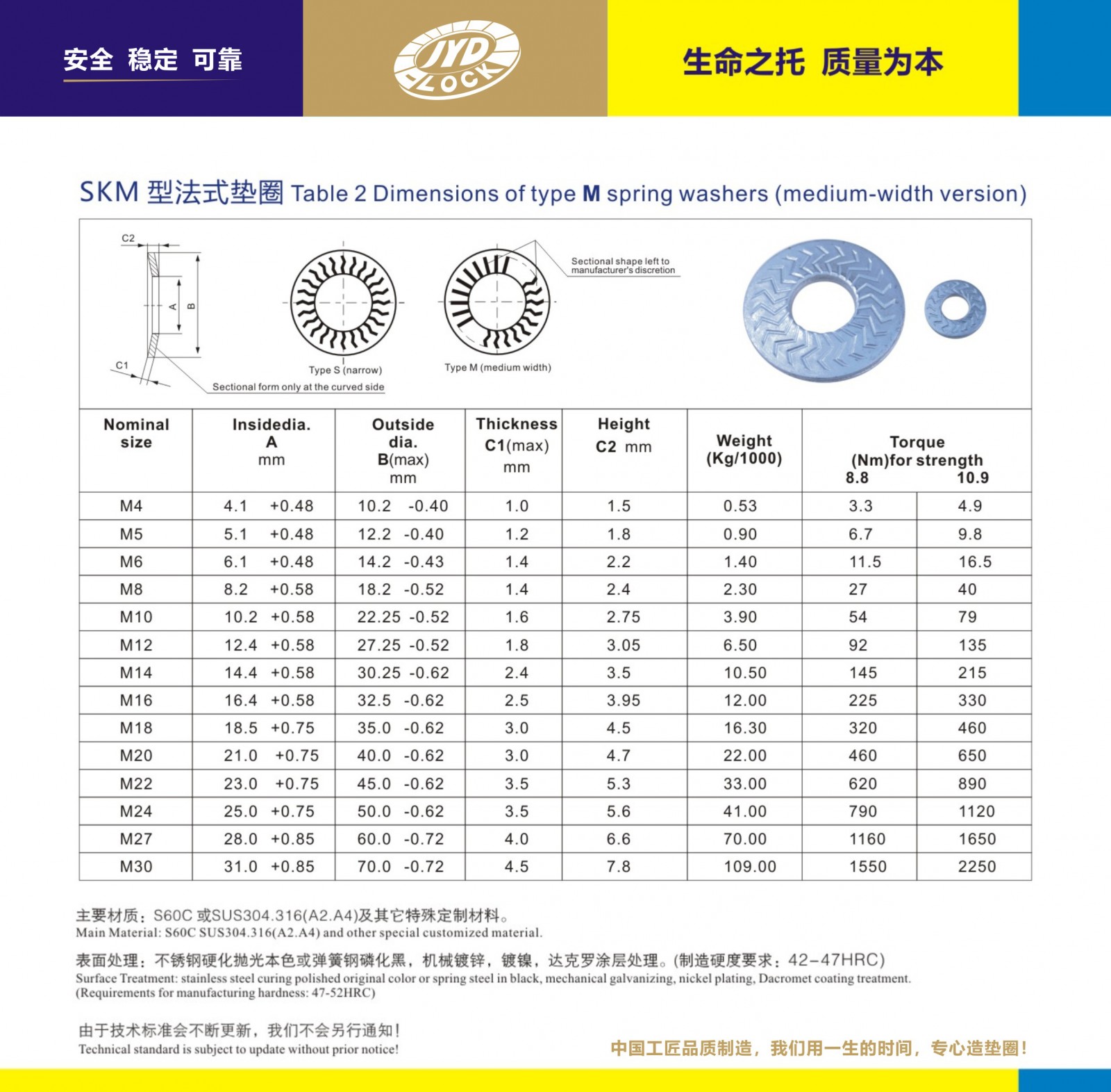 • 對應標準: YJT (SKM)6004 SKM 滾花碟形墊圈