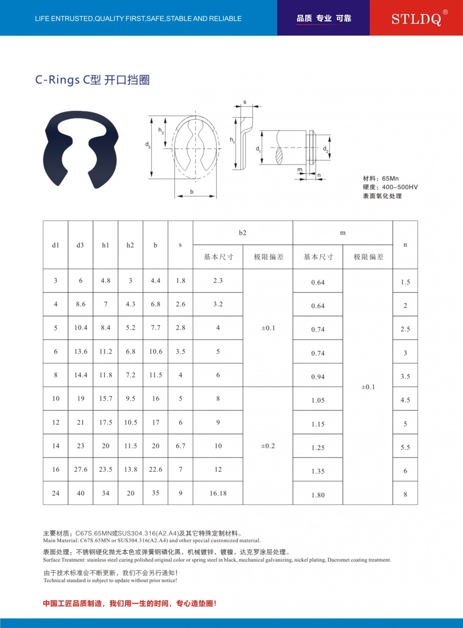 CR型開口擋圈,M3-M24規(guī)格 65mn材質(zhì) 表面處理:磷化黑色